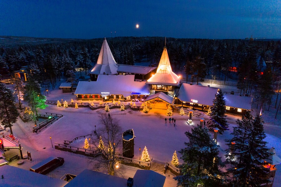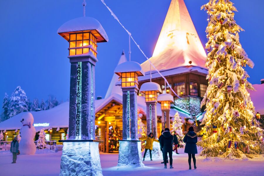 Śniadanie, przejazd do Wioski Świętego Mikołaja, gdzie znajdują się liczne sklepy z pamiątkami, kawiarnie i biuro Świętego Mikołaja – budynek z efektowną wieżyczką, w którym Święty Mikołaj przyjmuje gości, a towarzyszący mu elf robi zdjęcia na życzenie (za opłatą). W wiosce jest również urząd pocztowy, z którego można wysłać kartkę ze specjalnym stemplem z Koła Podbiegunowego, które tu przebiega – 66°33′45.9″ na północ od równika. Koło Podbiegunowe oznacza najdalej na południe wysuniętą szerokość geograficzną, na której słońce może pozostawać nieprzerwanie pod lub nad horyzontem przez 24 godziny – zjawiska te znane są jako „Słońce o północy” latem i Noc Polarna (Kaamos) zimą. W wiosce można nawet otrzymać certyfikat przekroczenia Koła Podbiegunowego.