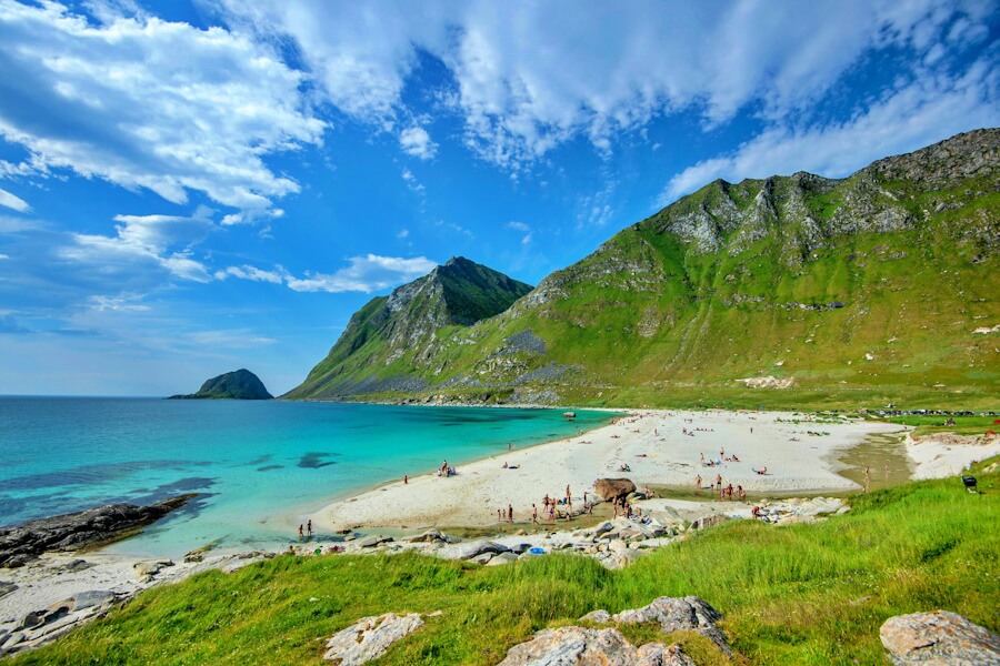 Odkryjemy piękno plaży Rørvik, jednego z najpiękniejszych nadmorskich miejsc w archipelagu. Na wyspie Gimsøy odkryjemy surowe piękno góry Hoven i zaciszną plażę Hov. Następnie odwiedzimy plażę Haukland, często uznawaną za jedną z najlepszych plaż na Lofotach, gdzie turkusowe wody spotykają się z białym piaskiem. Następnie udamy się do Henningsvær, tętniącego życiem miasta portowego słynącego z drewnianych domów i słynnego boiska piłkarskiego na wyspie.