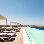 Na dachu hotelu jest taras z basenem.